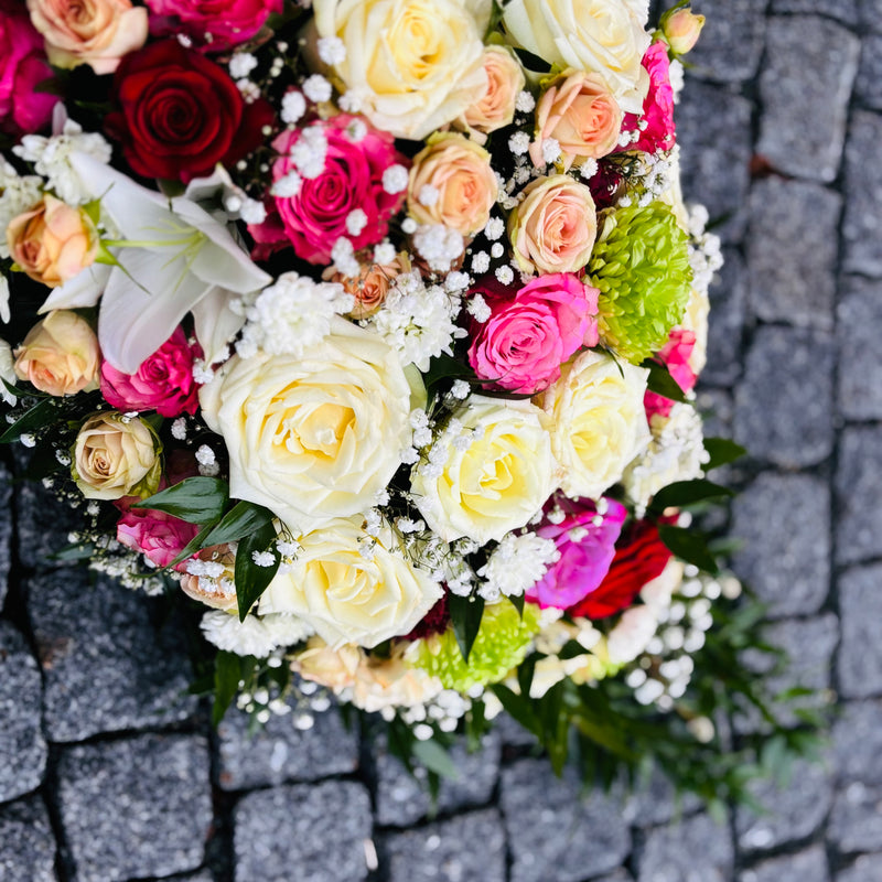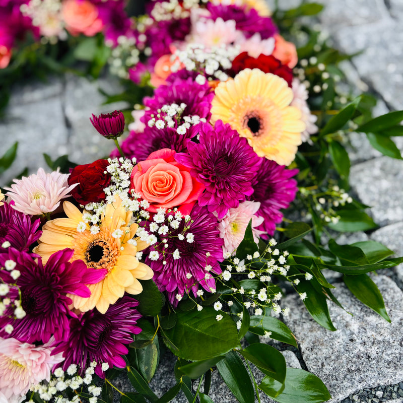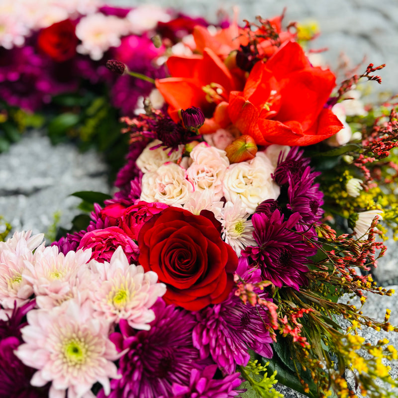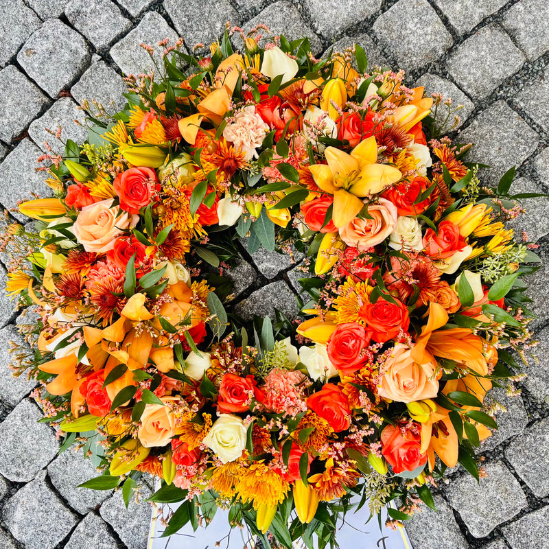 Store blomsterarrangementer og kranser må bestilles minimum 3 dager i forveien, slik at vi kan sikre blomster, utforming og levering i god tid før seremonien.