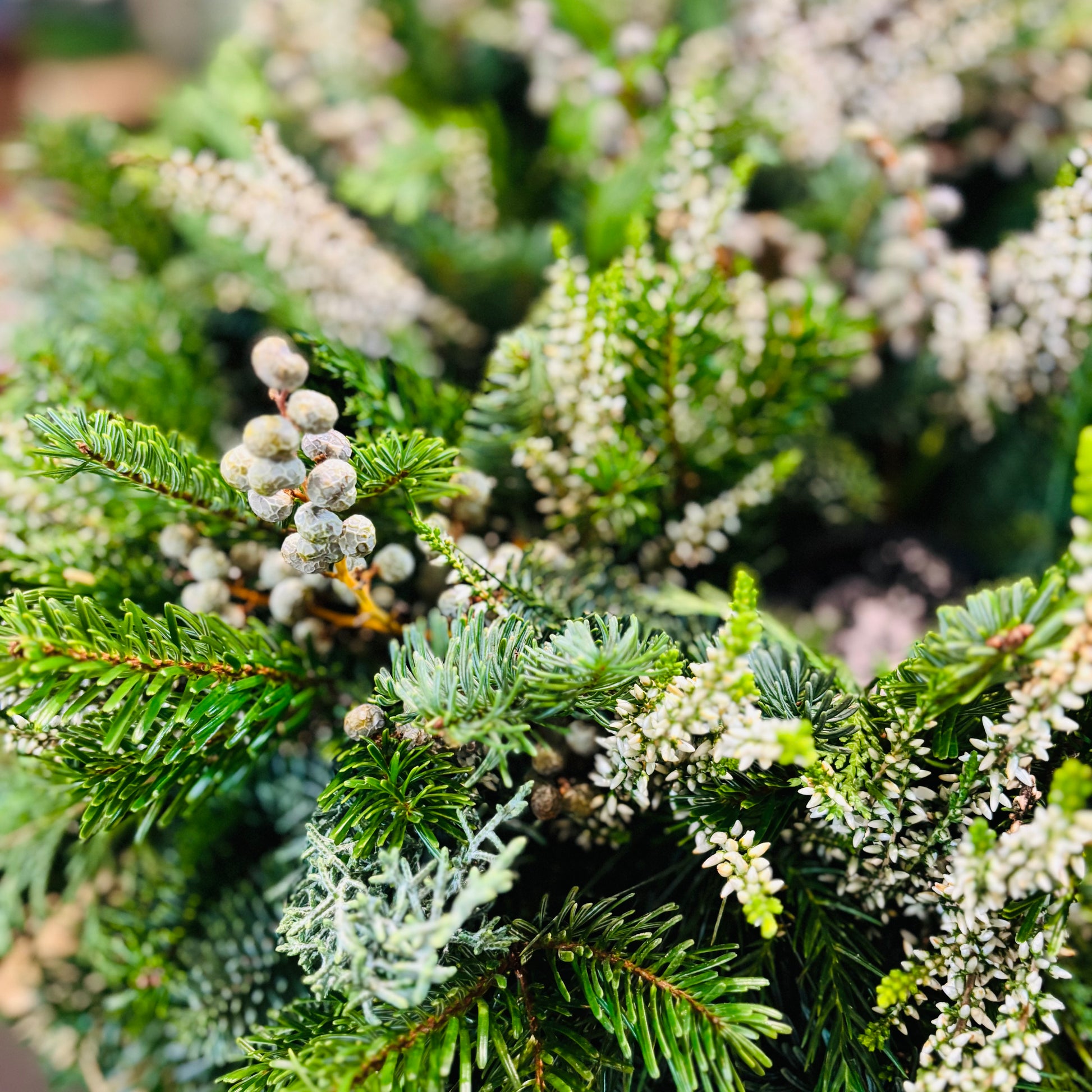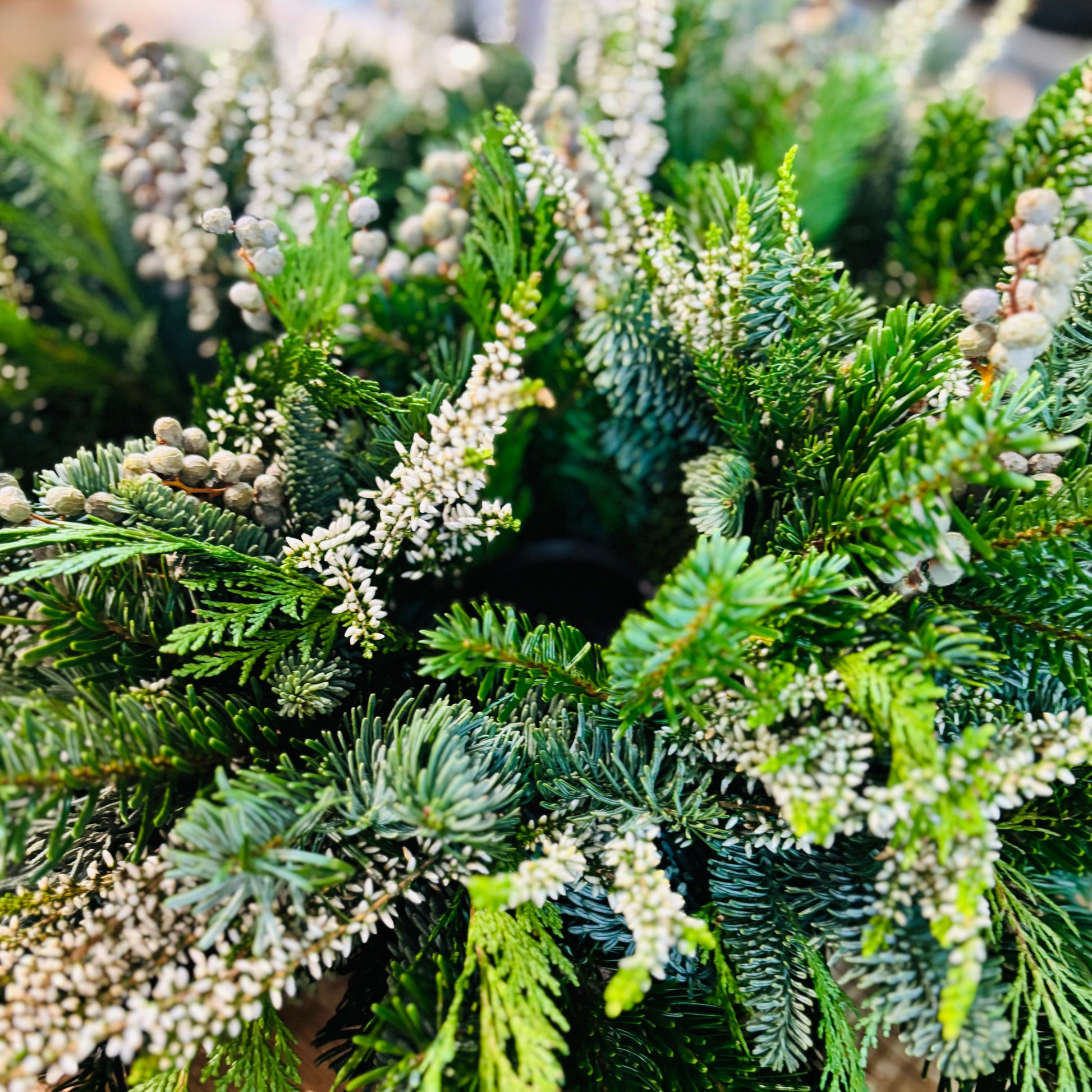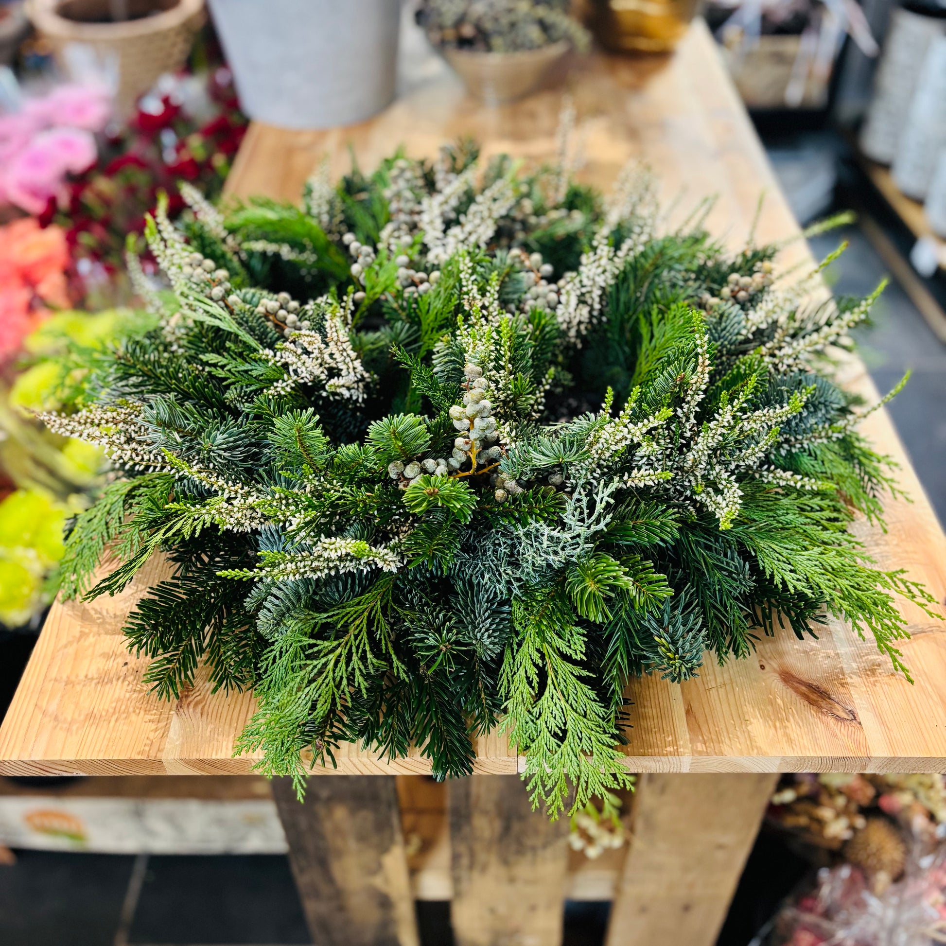 Denne frodige juledekorasjonen på ca. 50 cm fungerer som et elegant midtpunkt på spisebordet, sofabordet eller på en skjenk. Den tilfører rommet varme, duft av vintergrønt og den rolige forventningen som følger med adventstiden.