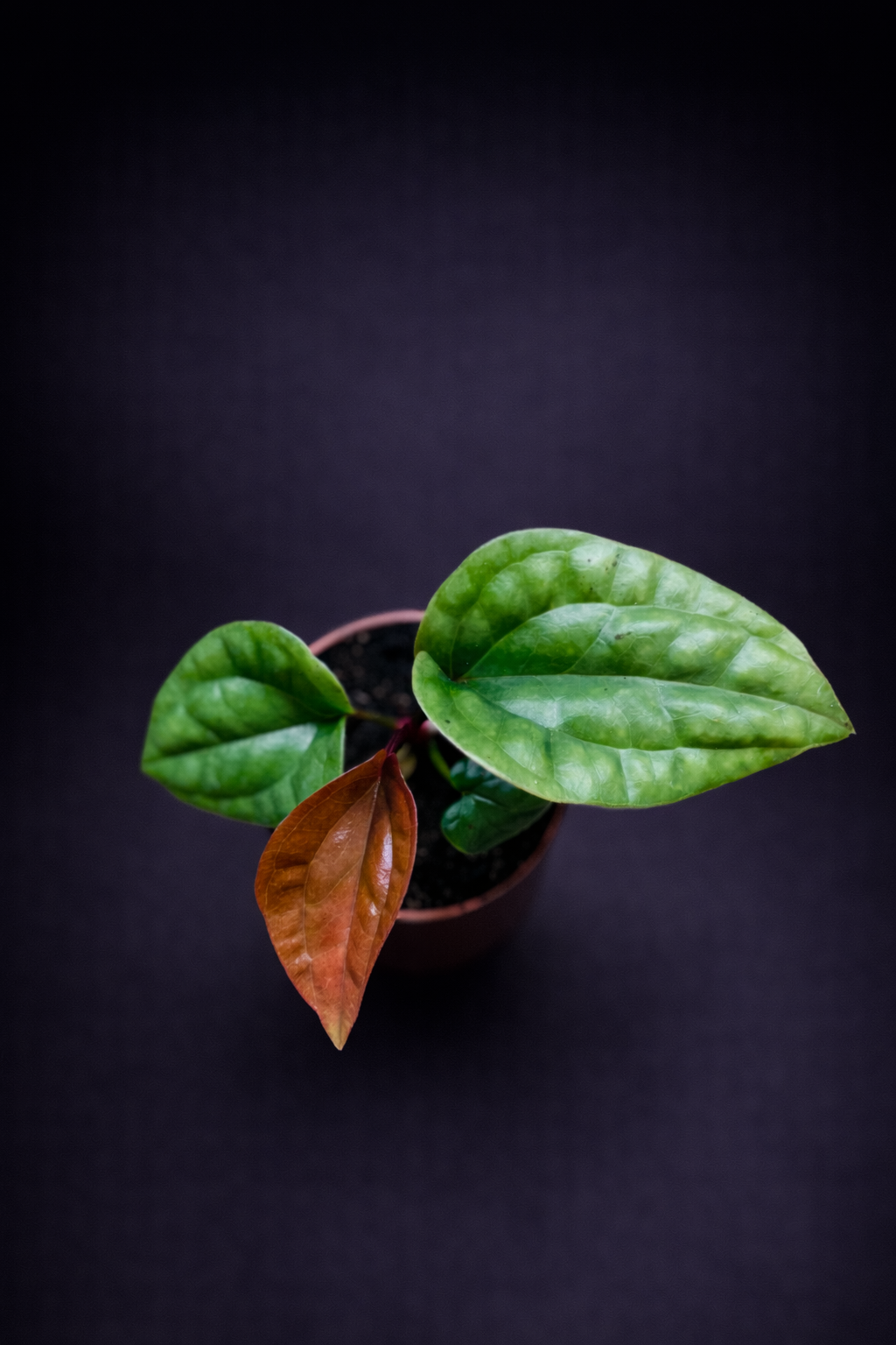 Anthurium Luxurians × Radicans er en eksklusiv hybrid som kombinerer den karakteristiske, kraftige bladstrukturen fra Luxurians med den mer kompakte og robuste veksten fra Radicans. Selv i ung alder viser planten tydelig teksturert bladverk med dype grønntoner og et nesten skulpturelt preg. Dette er en tropisk aroid med stort utviklingspotensial, spesielt attraktiv for samlere som ønsker en plante med både struktur og eleganse.