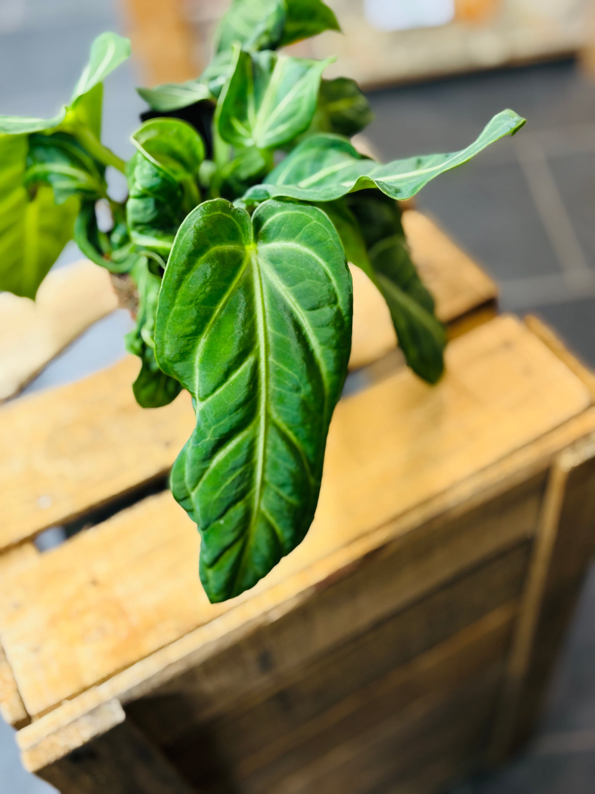 Anthurium Villenaorum er en av de mest spektakulære og ettertraktede Anthurium-artene blant dedikerte plantesamlere verden over. Denne fascinerende planten har erobret hjerter med sine store, fløyelsmyke hjertformede blad som er dekket av markerte hvite årer som danner et intrikat, quiltlignende mønster. Opprinnelig fra Ecuador, imponerer denne sjeldne skjønnheten med sin dype grønne, veluraktige bladtekstur som inviterer til berøring og beundring. Med sine elegante blad som kan nå imponerende størrelser, er Anthurium Villenaorum perfekt for erfarne planteelskere og samlere som søker noe virkelig ekstraordinært. Denne planten kombinerer eksotisk skjønnhet med tropisk eleganse og er en sann raritet i enhver plantesamling.