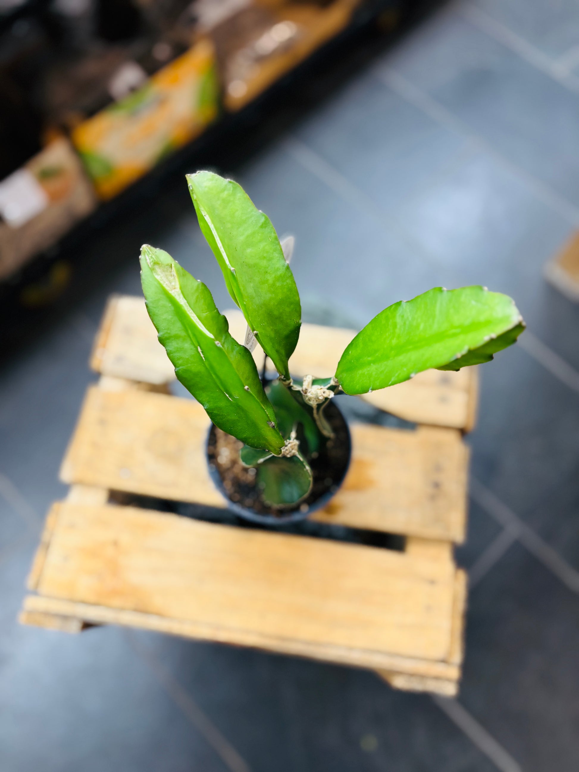 Dragon Fruit-kaktusen bringer en tropisk og eksotisk stemning til hjemmet med sine klatrende, saftige stammer og dekorative form. Den fungerer like godt som prydplante i stue eller kontor — og med sitt opprinnelige opphav fra varme, tropiske strøk har den både karakter og tilpasningsevne. Bildene viser et representativt eksempel; hver plante har sin egen vekstform og struktur.