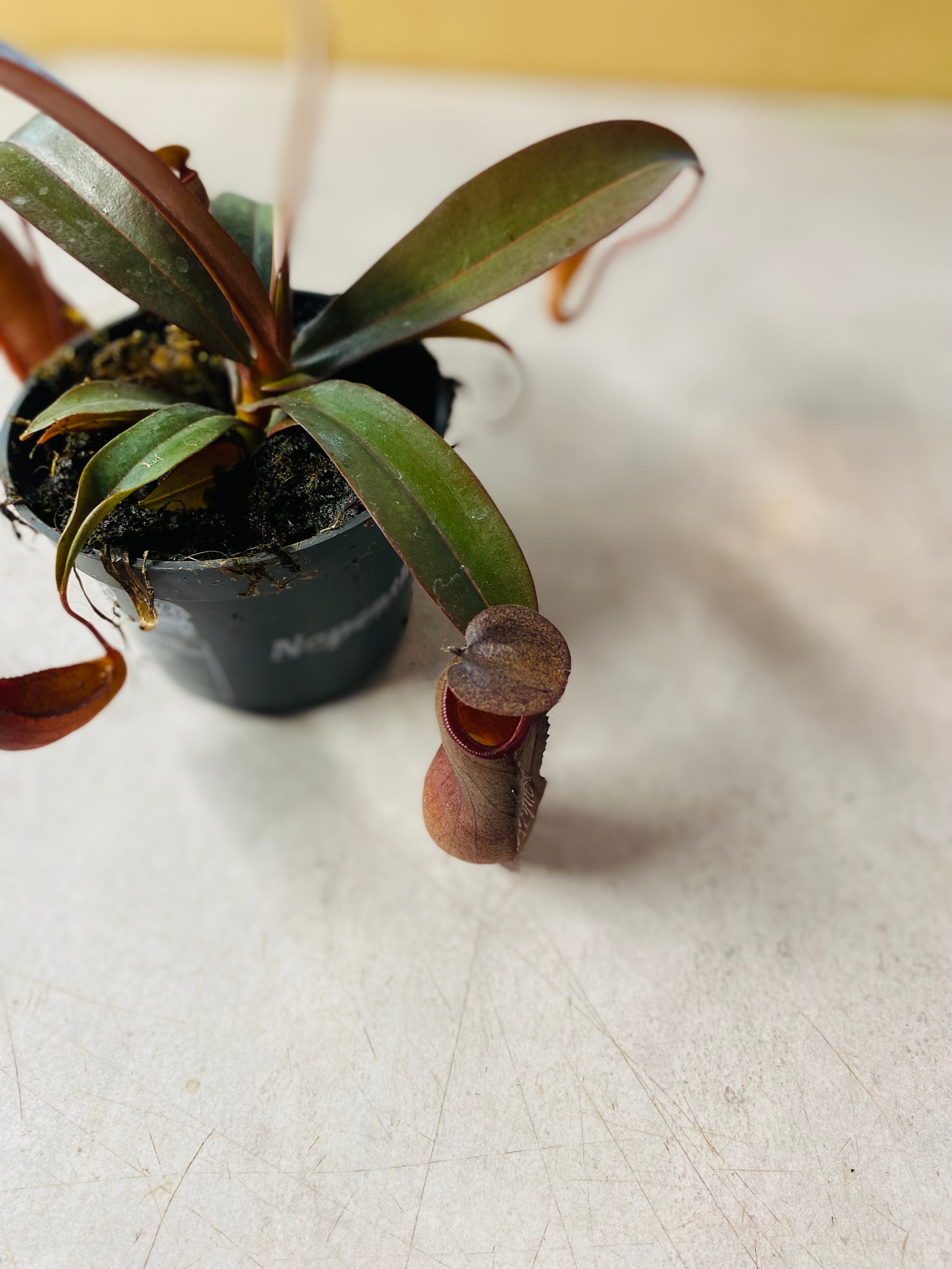 Nepenthes Mikei er en fascinerende kjøttetende plante fra Sumatra, kjent for sine mørke, purpurfargede krukker med elegante markeringer. Denne planten er et spennende tillegg til enhver planteentusiasts samling, takket være dens unike utseende og spesielle pleiebehov.