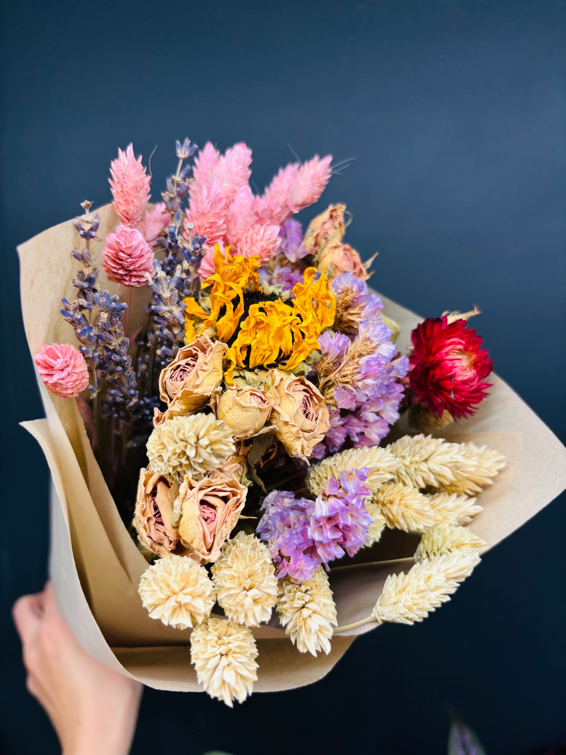 Rosy - Tørkede Blomsterbukett i Rosa Toner