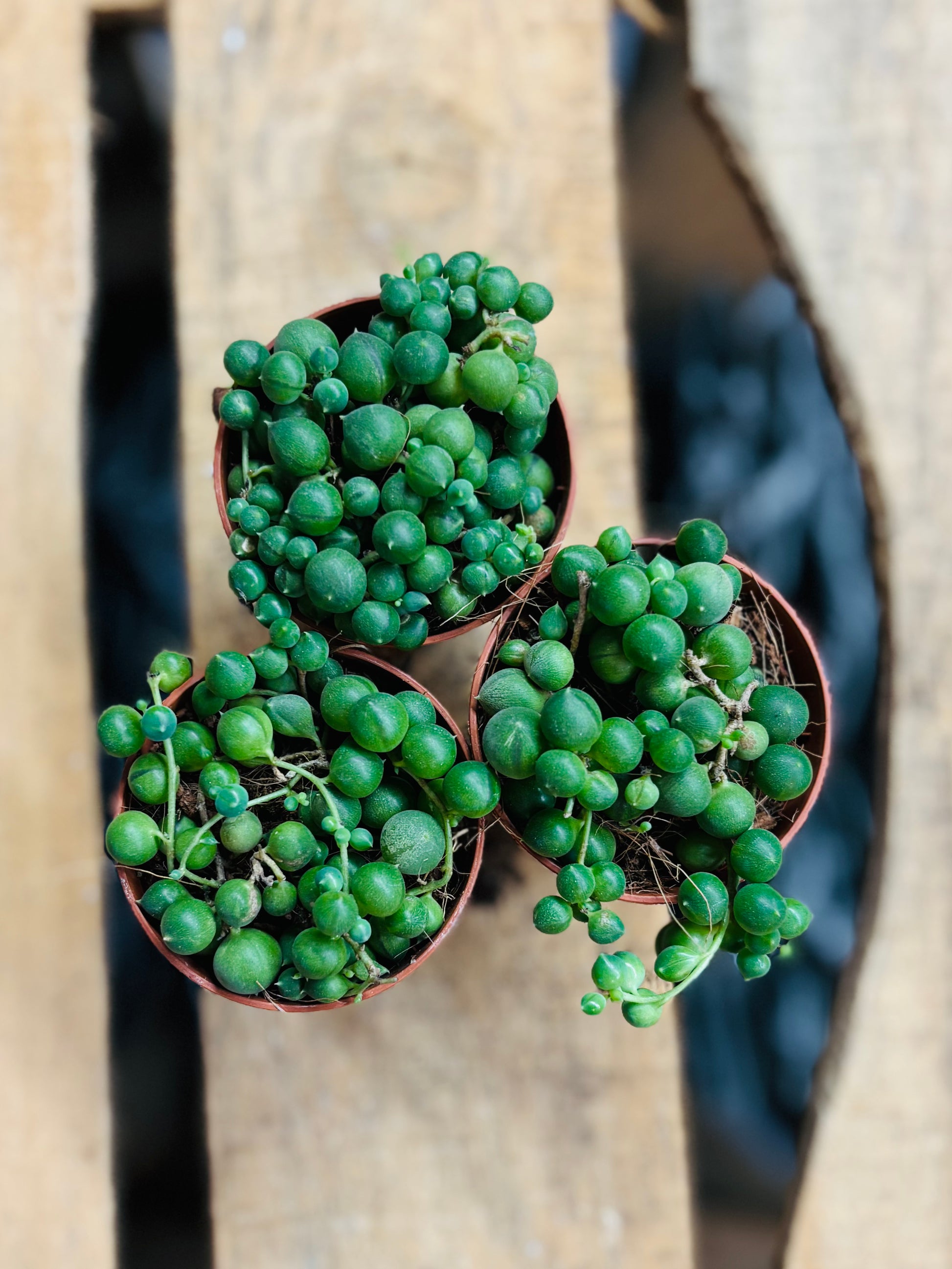 Plante som er avbildet er kun for illustrasjon. Som kjøper vil man få tilsendt en tilsvarende Senecio Rowleyanus med lignende størrelse og perleblad-utvikling, men hver plante er unik med sitt eget naturlige vekstmønster.