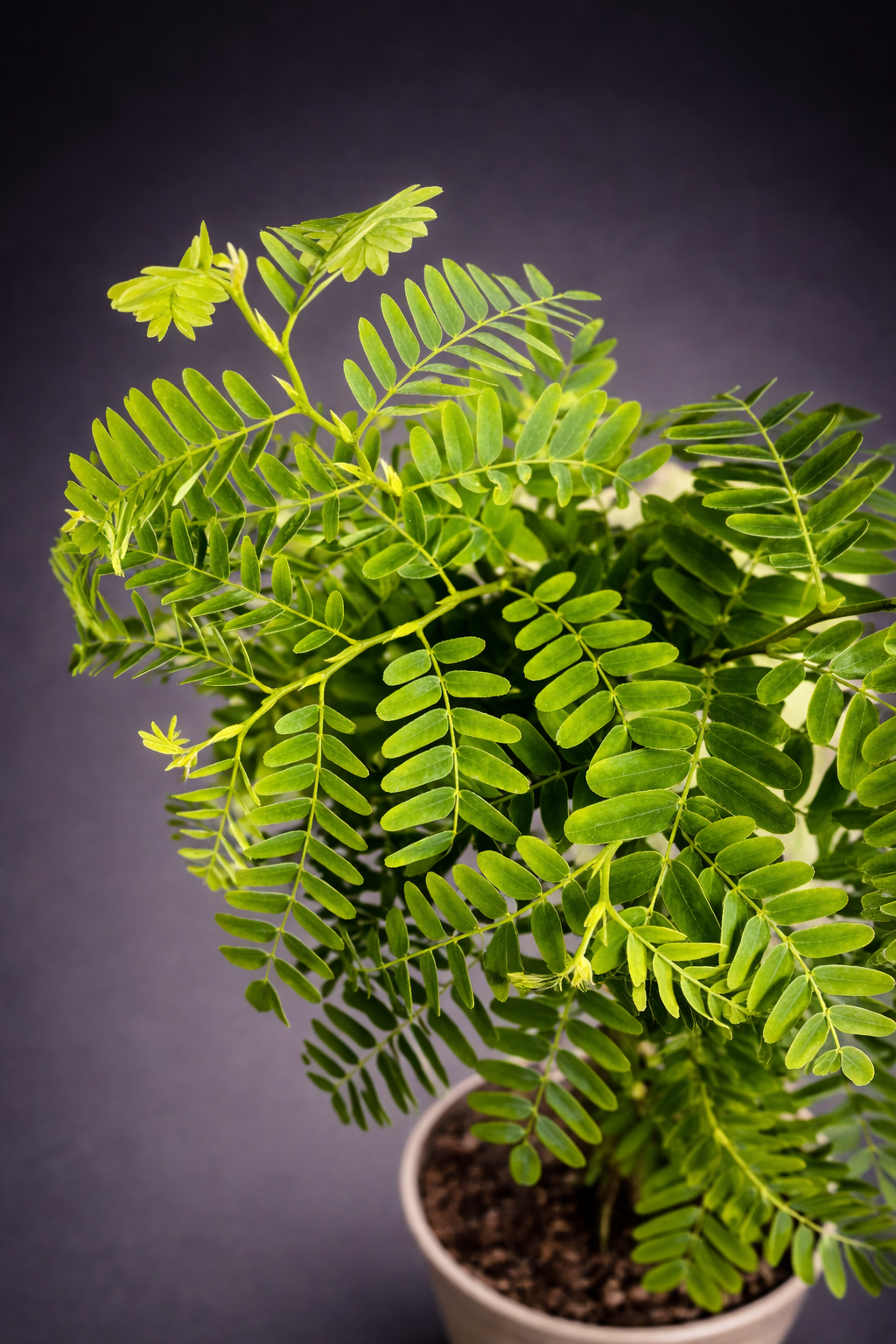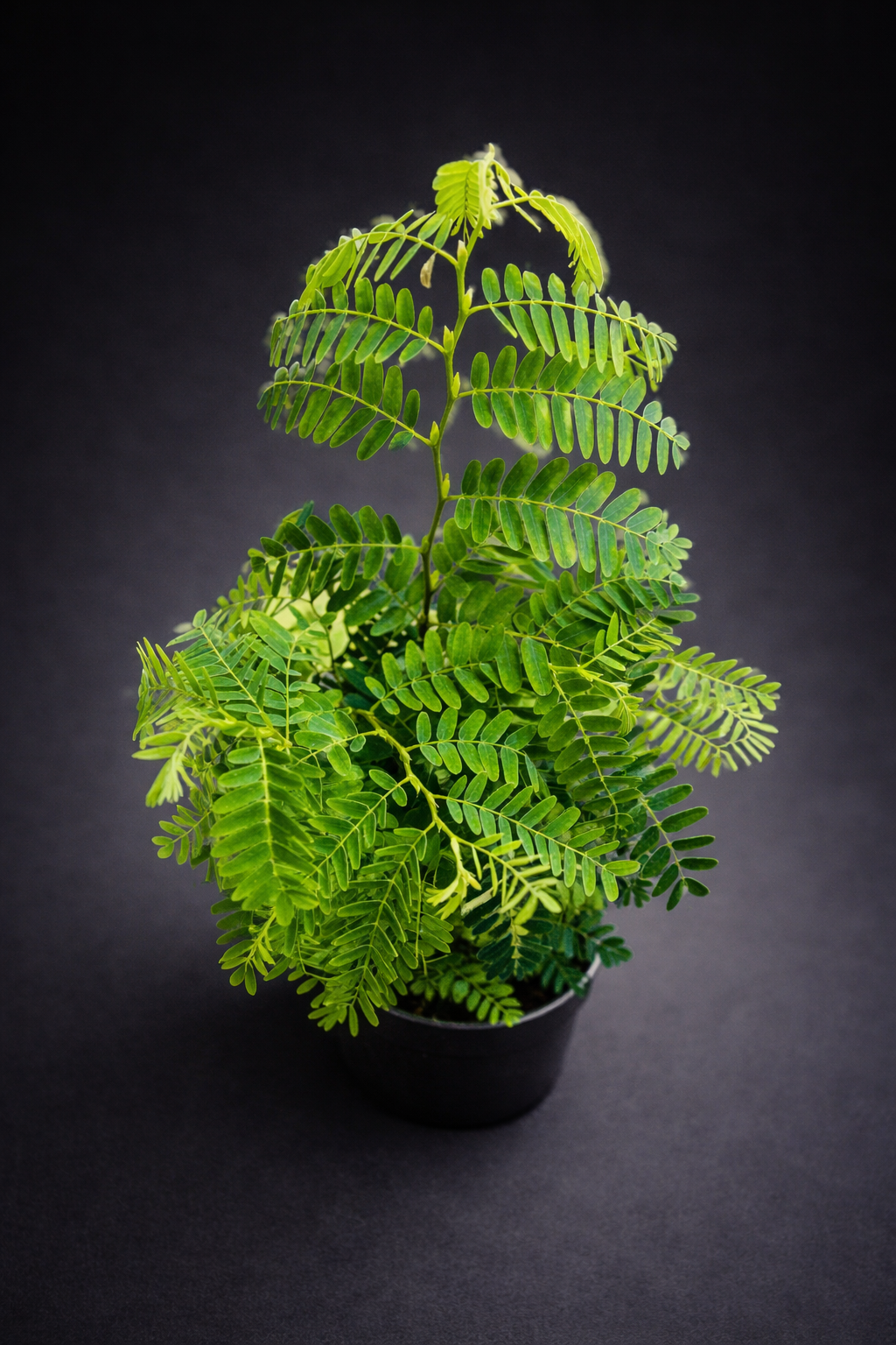 Tamarindus Indica, også kjent som tamarindtre, er en eksotisk og dekorativ plante med et lett og luftig uttrykk. De fine, fjærlignende bladene sitter tett langs slanke stilker og gir planten et elegant, nesten bonsai-lignende preg i ung alder. Med sitt tropiske opphav og karakteristiske bladverk tilfører denne planten et unikt og botanisk særpreg til hjemmet.