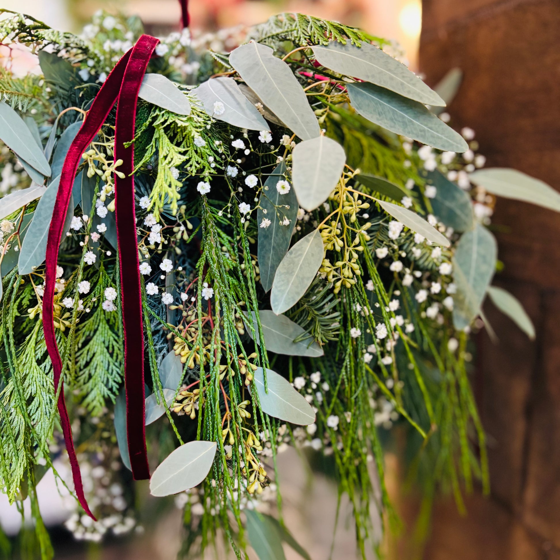 Skap en uforglemmelig jul med Vinterdråpe Julekule, en unik og håndbundet juledekorasjon fylt med frodige vintergrønne grener, eucalyptus og delikate hvite blomster som minner om lette snøfnugg. Denne hengende julekulen har et naturlig, luksuriøst uttrykk – perfekt for deg som ønsker en dekor som både er moderne, tradisjonell og full av julestemning.´